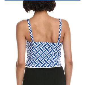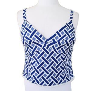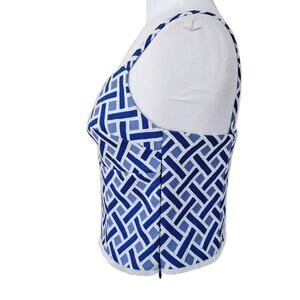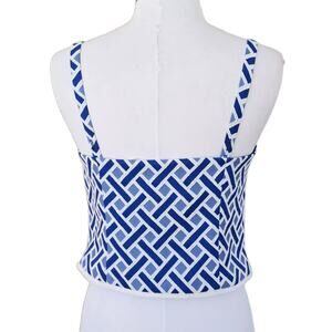 TRINA TURK Swian Crop Tank Top Size 6 Blue Lattice Luxe Resort Fringe