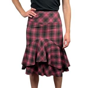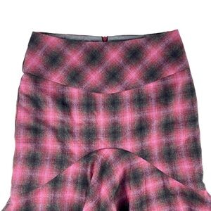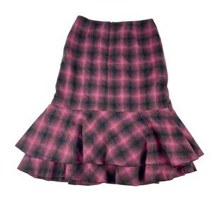 TRINA TURK TARTAN PLAID WOOL BLEND MERMAID RUFFLE TIERED SKIRT