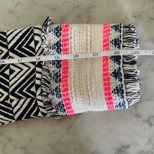 Color/Pattern: Blue White Geometric Patter, pink Gold accents