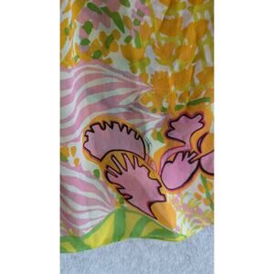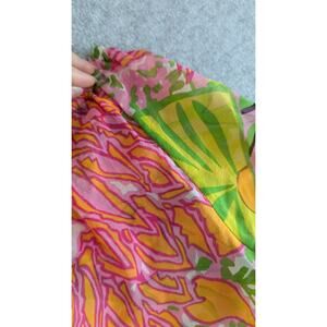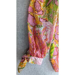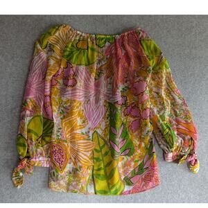 TRINA TURK Top Petite Silk Colorful Artsy Botanicals Tie Cuffs Delicate Peasant Lightweight Cruise Brunch
