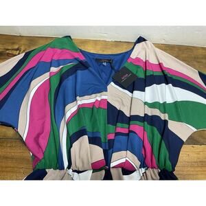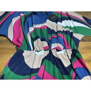 TRINA TURK Trina By Birch Mini Dress Small Multi V-Neck Dolman Sleeve Blouson