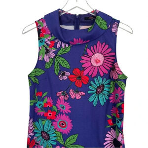 TRINA TURK Vibrant Retro Floral Ponte Knit Sleeveless Shift Dress 8