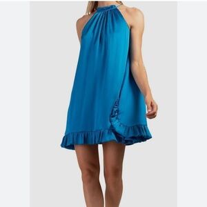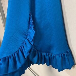 TRINA TURK WOMENS BLUE MURANO RUFFLE SATIN MINI DRESS XS