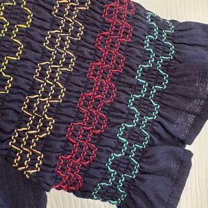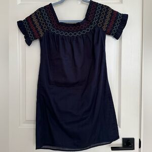 TRINA TURK Womens Navy Embroidered Smocked Short Sleeve Off Shoulder Tunic XS