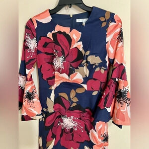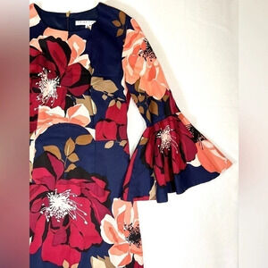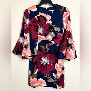 TRINA TURK Women’s Navy Splendid 3/4 Bell Sleeve Floral Faille Mini Dress Size 4