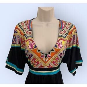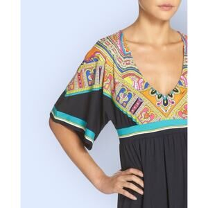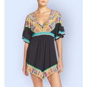 TRINA TURK Women's Nepal Black & Tropical Colors Swim Cover up Dress 6 8 Tunic