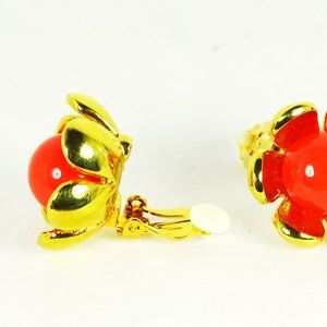 TRINA TURK Yellow Gold Plated Coral Color Resin Clip Earrings