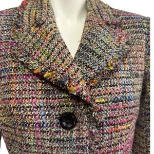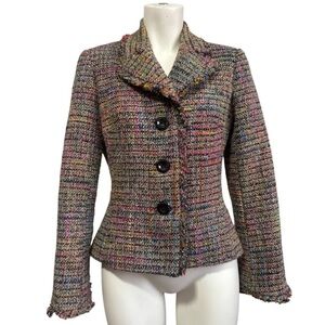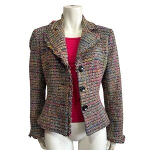 TRINA TURK blazer multicolor black pink tweed fringed trim jacket women’s 8