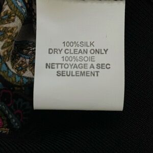 TRINA Turk 100% Silk Paisley Button Down Elastic Waist Long Sleeve Blouse, Small