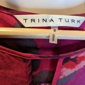 Trina Turk Bright Floral 100% silk flowy sleeveless blouse