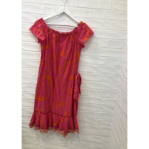 A tassel embellished hem adds a little extra fun to this off-the-shoulder dress. - Off-the-shoulder - Short sleeves - Tie waist - Ladder trim detail - Tassel hem - Approx. 34.5" length (size S) - Imported
