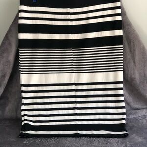 Trina Turk off-white creamy and black striped fully lined elastic waist skirt . Very soft comfortable and stretchy in excellent condition