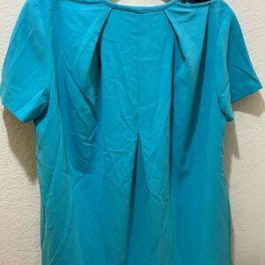 TRINA TURK Floramina Open Shoulder V-Neck Short Sleeve Top M Turquoise Blue NWOT