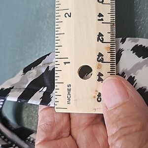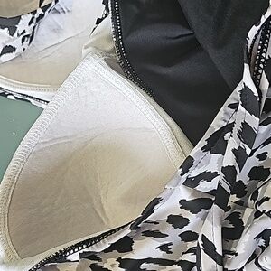 Very cute and flattering style with a little skirt. padded no wire.  There is no size tag.  but I believe that it is leaning too large. Very good used condition and quality.