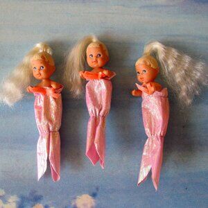 TRIPLET BABY KRISSY DOLLS w BLONDE HAIR & 3 MERMAID COSTUMES, BARBIE 1973 VINT.