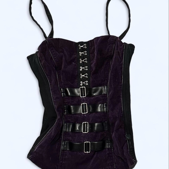 Tripp NYC black and purple corset style top.