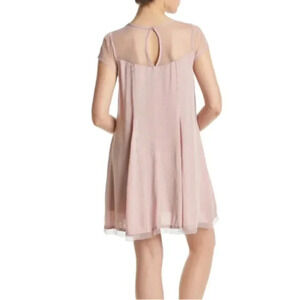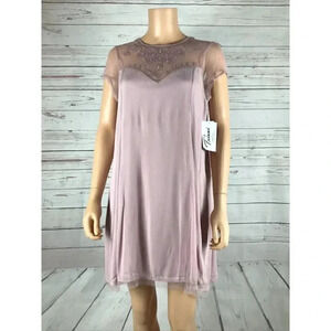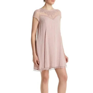 TRIXXI Junior's Boho Embroidered Illusion Mesh Flowy Dress, Blush Pink M