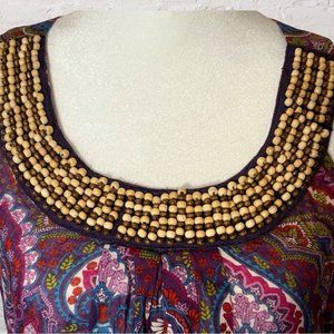 Trixxi Boho Paisley Floral Sleeveless Top with Wood beading Size Medium