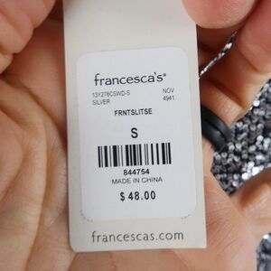 BLACK WITH SILVER SEQUIN BODYCON PARTY SKIRT ELASTIC WAIST FRONT LEFT LEG SLIT LINED TO KNEE SIZE SMALL BY TRIXXI NEW WITH TAGS