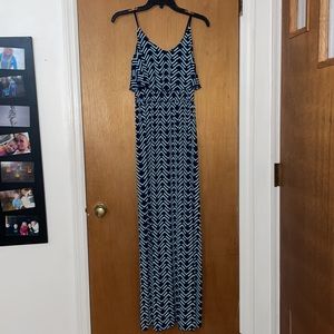 •TRIXXI•NAVY AND MINT TURQUOISE BOHO RUFFLE CHEST MAXI DRESS SIZE MEDIUM EUC