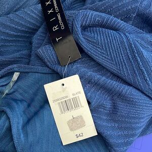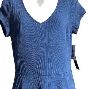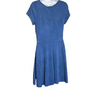 TRIXXI Women's Short Sleeve Swing Dress V Neck Textured Fabric Blue Size Large