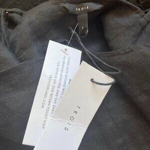 TROIS The Brand Lotte Dress Black Thigh High Slit Size 2-4 in 100% Linen NEW