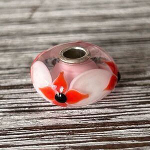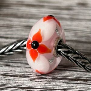 TROLLBEADS Black White Coral Pink Flower Unique LAA 925S NEW! Textured