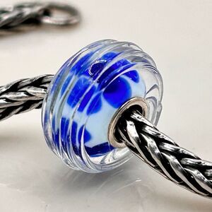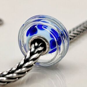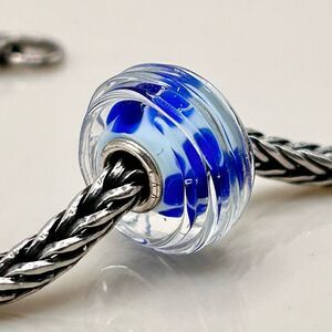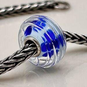 TROLLBEADS Blue Flower Ripples Unique LAA 925S Preowned, Textured Swirl, Rare