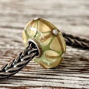 TROLLBEADS Pastel Yellow, Green & Gold Glitter Stained Glass LAA 925S NEW!