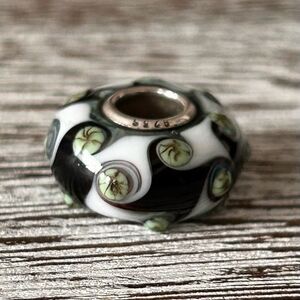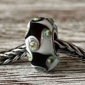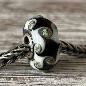 TROLLBEADS White, Mint Green & Brown Harlequin Universal Unique