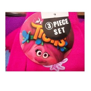 TROLLS Girls 4-6x Hat Scarf Gloves Set NWT