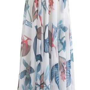TROPICAL FLORAL WATERCOLOR MAXI SKIRT IN WHITE