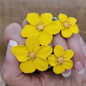 Hinged daffodil yellow blossoms with hypoallergenic posts. Heavier pieces; may not be suitable for those sensitive to weight.
