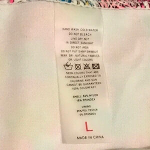 Size large swim bottom is versatile to pair with your favorite swim top. The tropical print has pink ribbon detail in front.