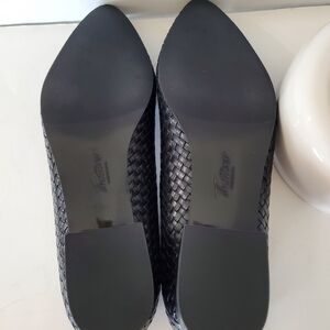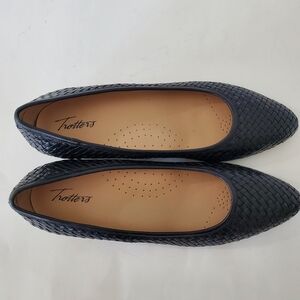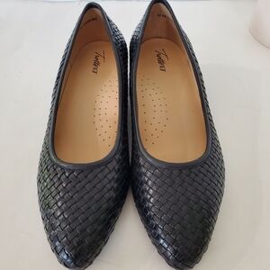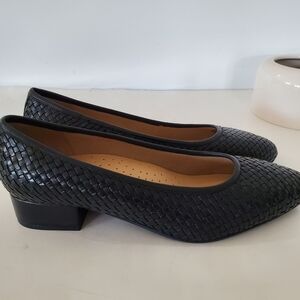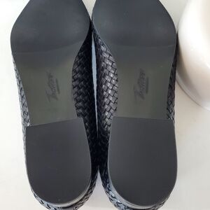 TROTTERS 10.5 Black Woven Leather JADE 1" Heel Slip On Shoes Comfort Office NWOB