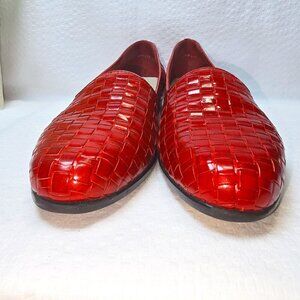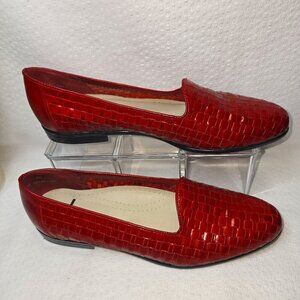 TROTTERS CHERRY RED LEATHER WOVEN LOAFERS WOMENS SIZE 9 EUC