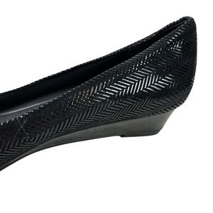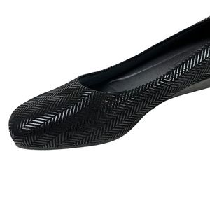 TROTTERS Genuine Leather Black Herringbone Low Wedge Slip On Shoes Loafers 9 N