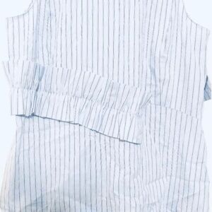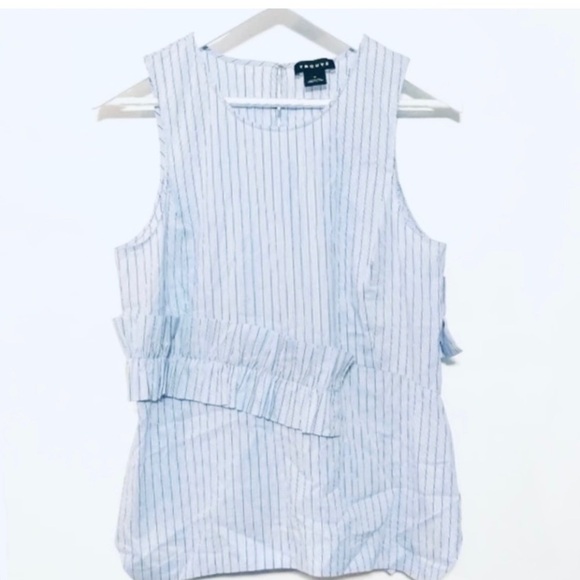 TROUVÉ Cotton Stripe Ruffle Sleeveless Shirt, Light Blue
