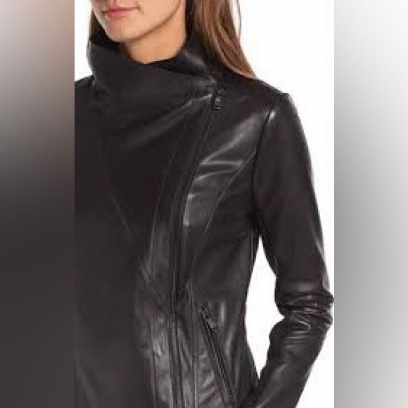 TROUVÉ Women’s Black Leather Asymmetrical Zip Moto Jacket Size Small