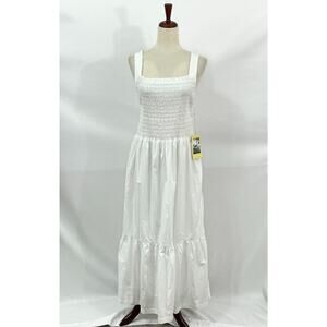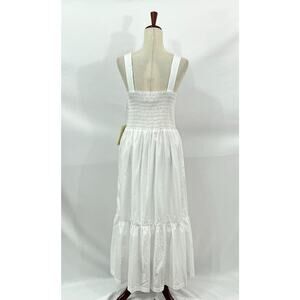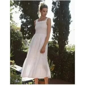 Women's dress by TROVATA Birds of Paradis. Size M Medium. Dolores dress, classic white. Smocked bodice, sleeveless, tiered, midi, 100% cotton, 100% viscose lining. NWT new with tags.