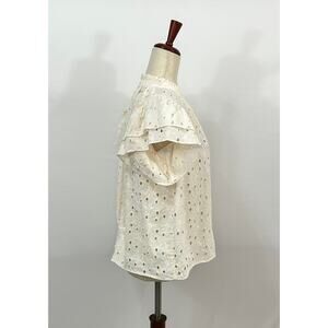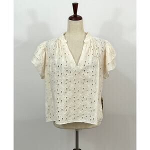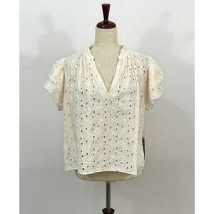 Women's blouse by TROVATA birds of Paradis. Size S Small. Clover blouse in daisy eyelet print. Ivory/Cream. Short flutter sleeve. 100% cotton. NWT new with tags.