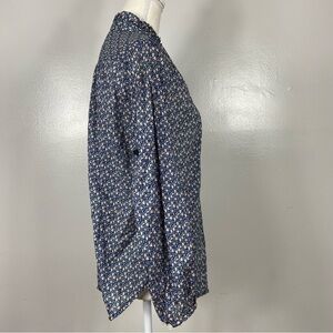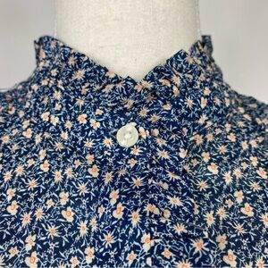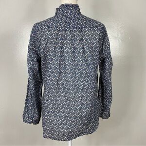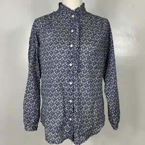 TROVATA Birds of Paradis ditzy floral print ruffle high neck button down blouse