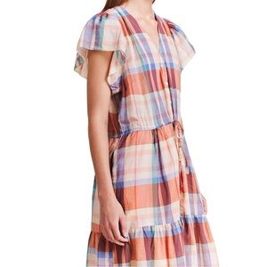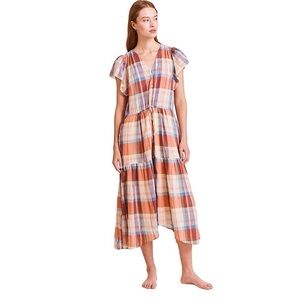 TROVATA Kristi Tiered Ruffle Market Plaid Midi Dress