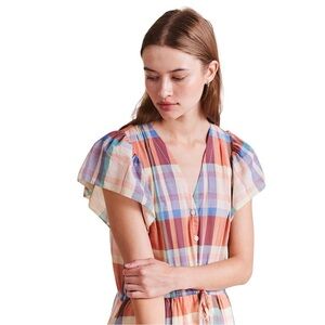 EUC women’s size S TROVATA CALIFORNIA BIRDS OF PARADIS Kristi Midi Dress in Market Plaid