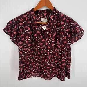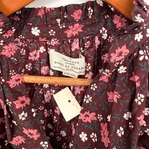 TROVOTA Birds of Paradis NWT Clover Silk Blen Blouse in Plum Blossom // XS