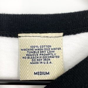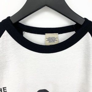 Additional Info: Material: Soft, lightweight semi-sheer, *100% cotton baseball raglan tee, *Rounded crewneck, *Quarter sleeves, *Large full graphic print, *Double stitched, *Rounded hem, *MADE IN USA | Measurements: Shoulder 17.5", Pit/Pit 16"-19.5" (fully stretched), Bust/Chest 32"-38.5", Sleeve 19" from end of neck hem to end of sleeve hem and 14" from shoulder to end of sleeve hem, Sleeve opening 5.5", Arm Width 7.3", Length 26.5"-27" (hi-lo hem)