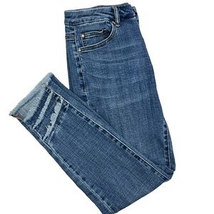 TRU Luxe Skinny Ankle Denim Blue Jean Medium Wash w Frayed Tiered Hem Size 6