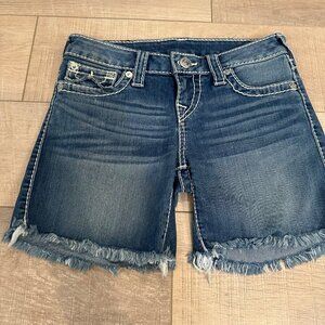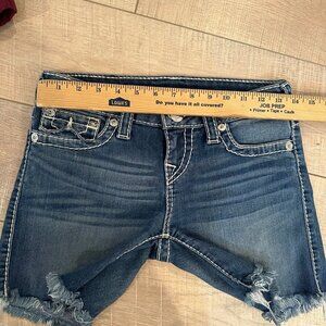 TRU RELIGION WOMENS DENIM SHORTS MID CUT OFF SIZE 26