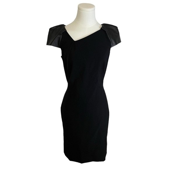 TRU TRUSSARDI Little Black Dress LBD Leather Zip Up Mini size 4 Party Wedding