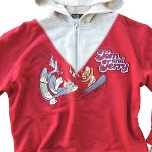 TRUCE Girl's Dark Red Terry Cotton Tom & Jerry Crop Hoodie Big Kids Size L / 14